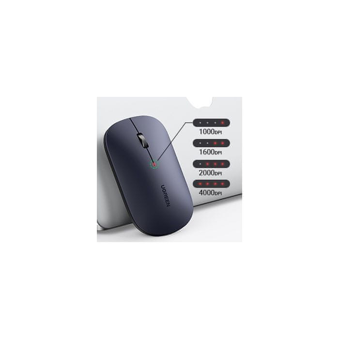 Brezžična miška UGREEN je tanka in tiha miška, ki deluje na 2.4GHz s 4000 DPI in zaradi naprednega čipa omogoča delovanje do 18-mesecev z eno baterijo (ni priložena).