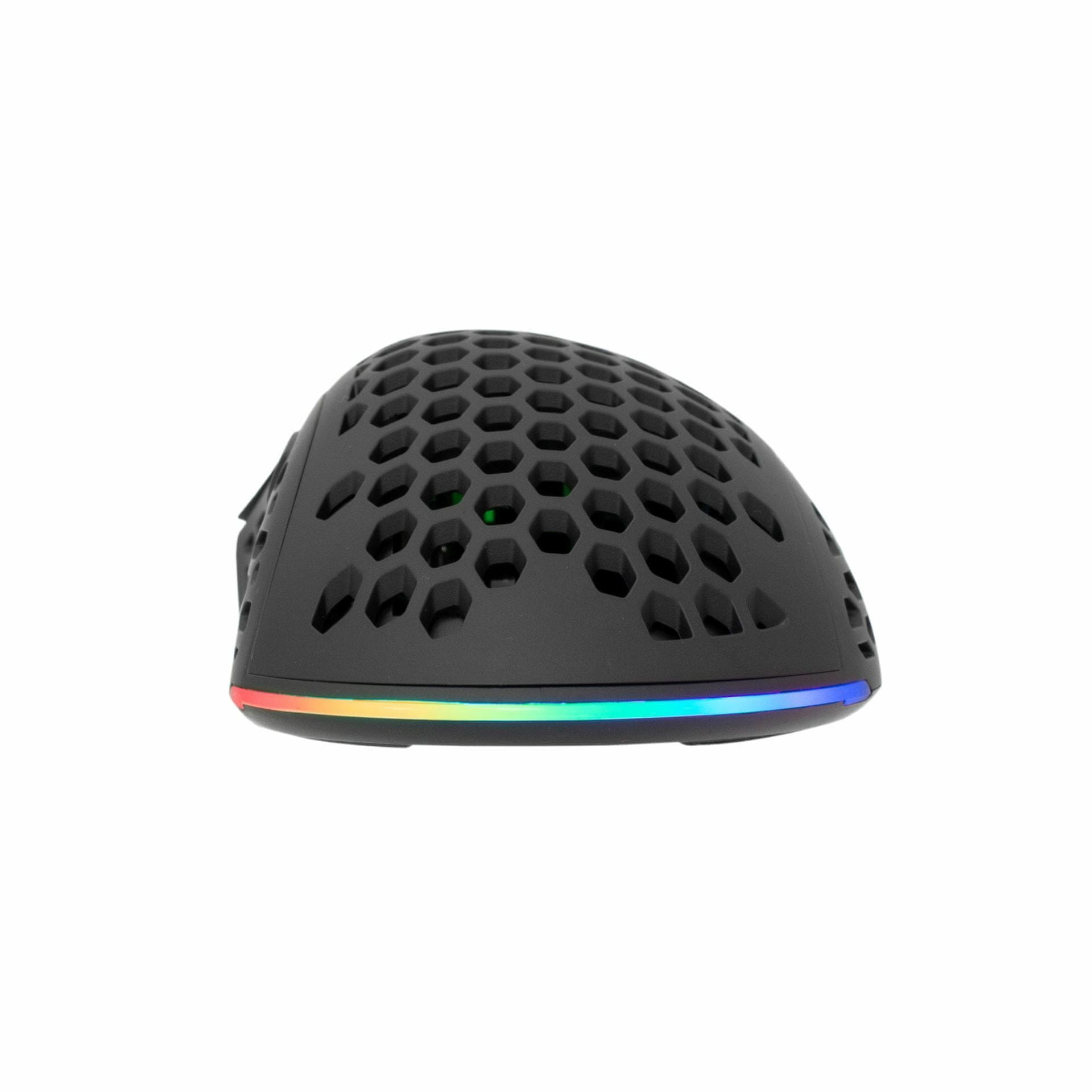 White Shark ESL-M56 Shuriken je zmogljiva gaming miška, zasnovana za hitre in natančne premike. S svojo težo le 65g in nastavljivo ločljivostjo do 19.000 DPI omogoča izjemno natančnost in hitrost, medtem ko eleganten honeycomb dizajn in RGB osvetlitev prinašata odlično igralno izkušnjo.