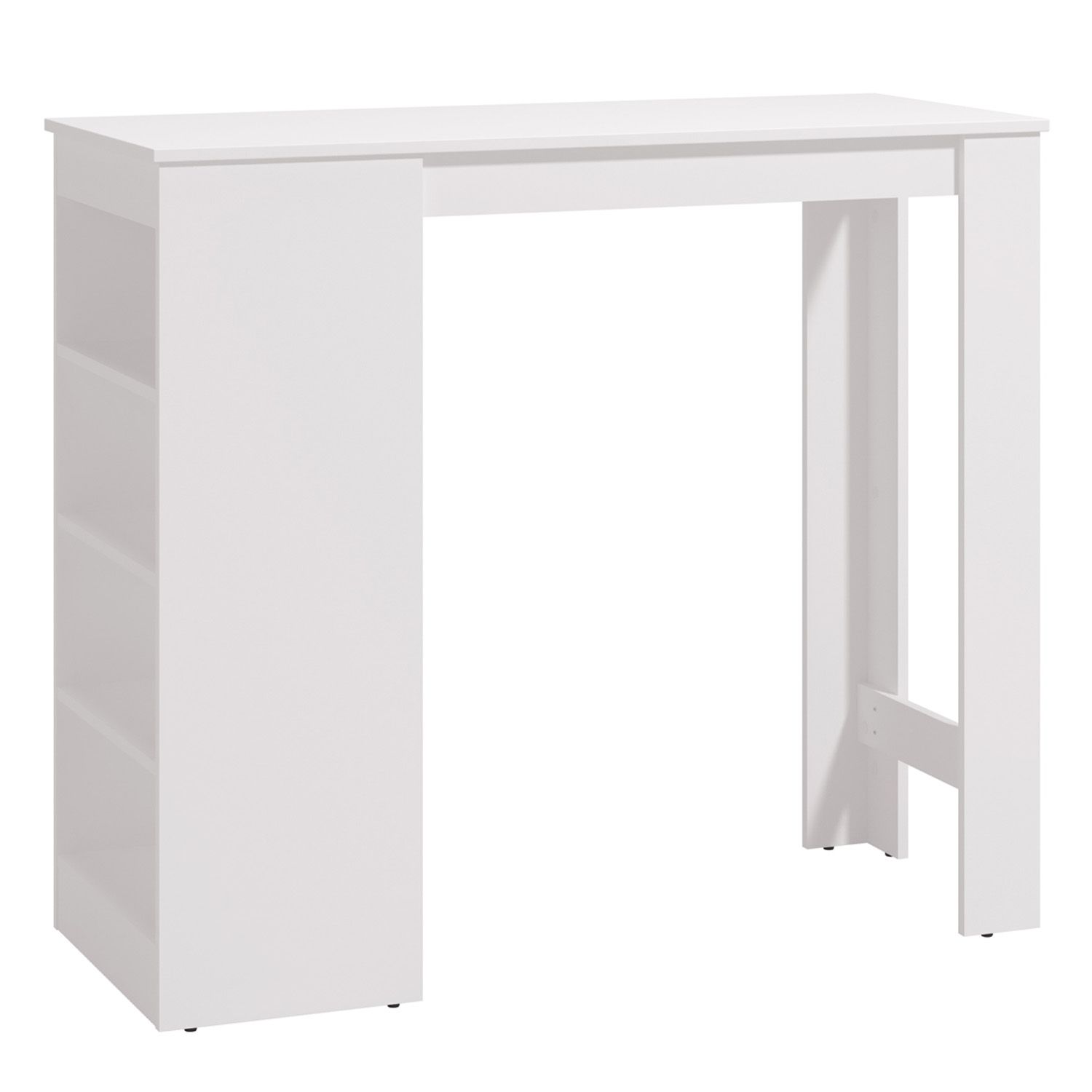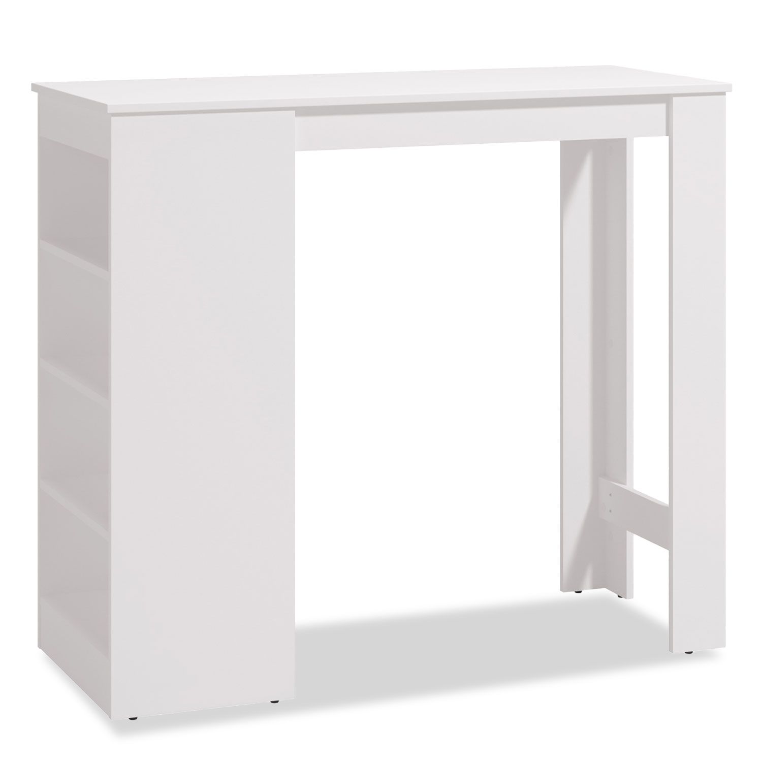Barska miza, bela, dolžina (cm): 120, višina (cm): 105, globina / širina (cm): 50, oblika: pravokotna, material (podrobno): les, plošča – les, z ali brez shranjevanja: s shranjevanjem, način postavitve: postavitev na tla, 4 police za praktičen shranjevalni prostor, enostavno vzdrževanje in odporna na praske zahvaljujoč melaminski prevleki, največja nosilnost mizne plošče: 20 kg, dimenzije posamezne police (ŠxG): pribl. 45 × 33 cm, največja nosilnost posamezne police: 5 kg