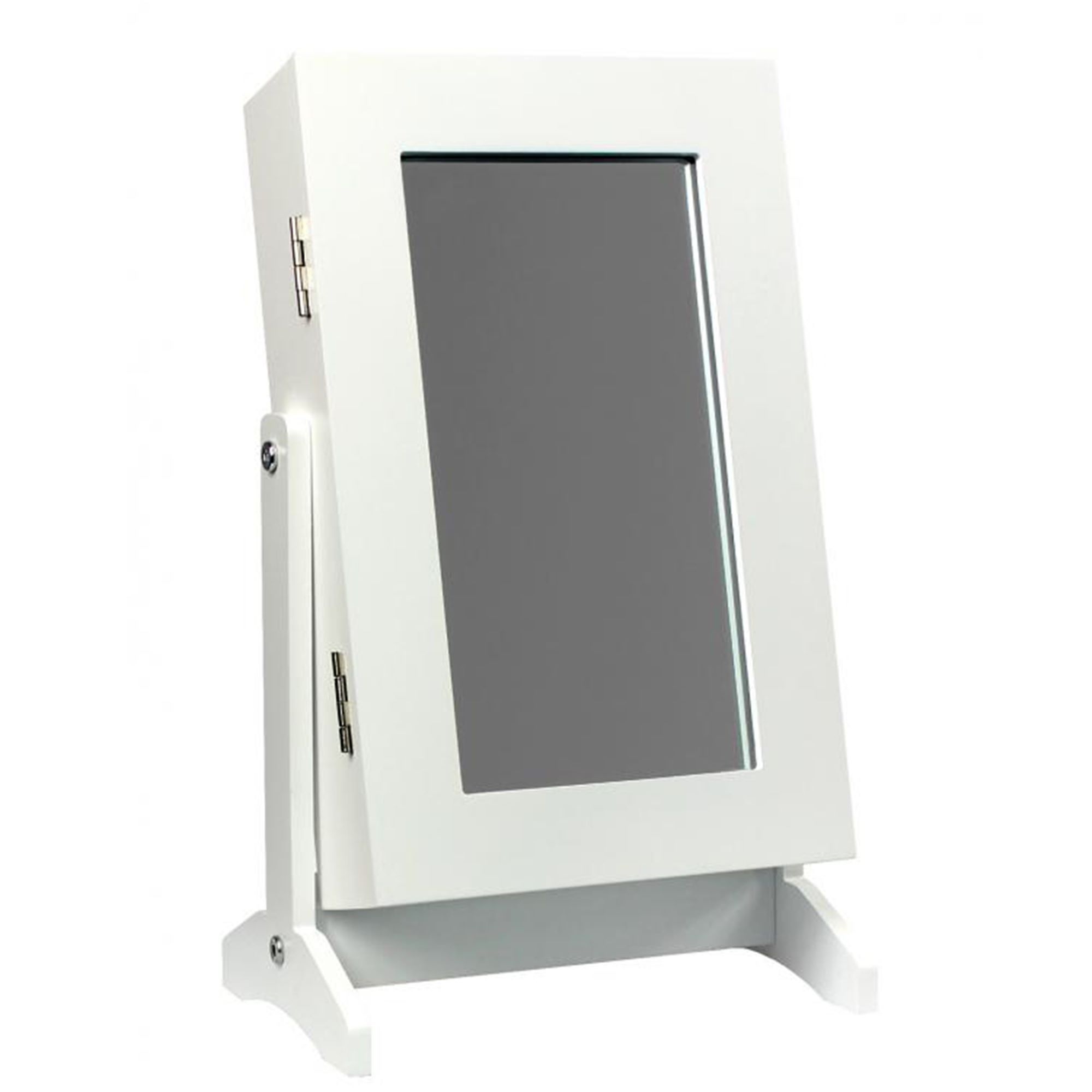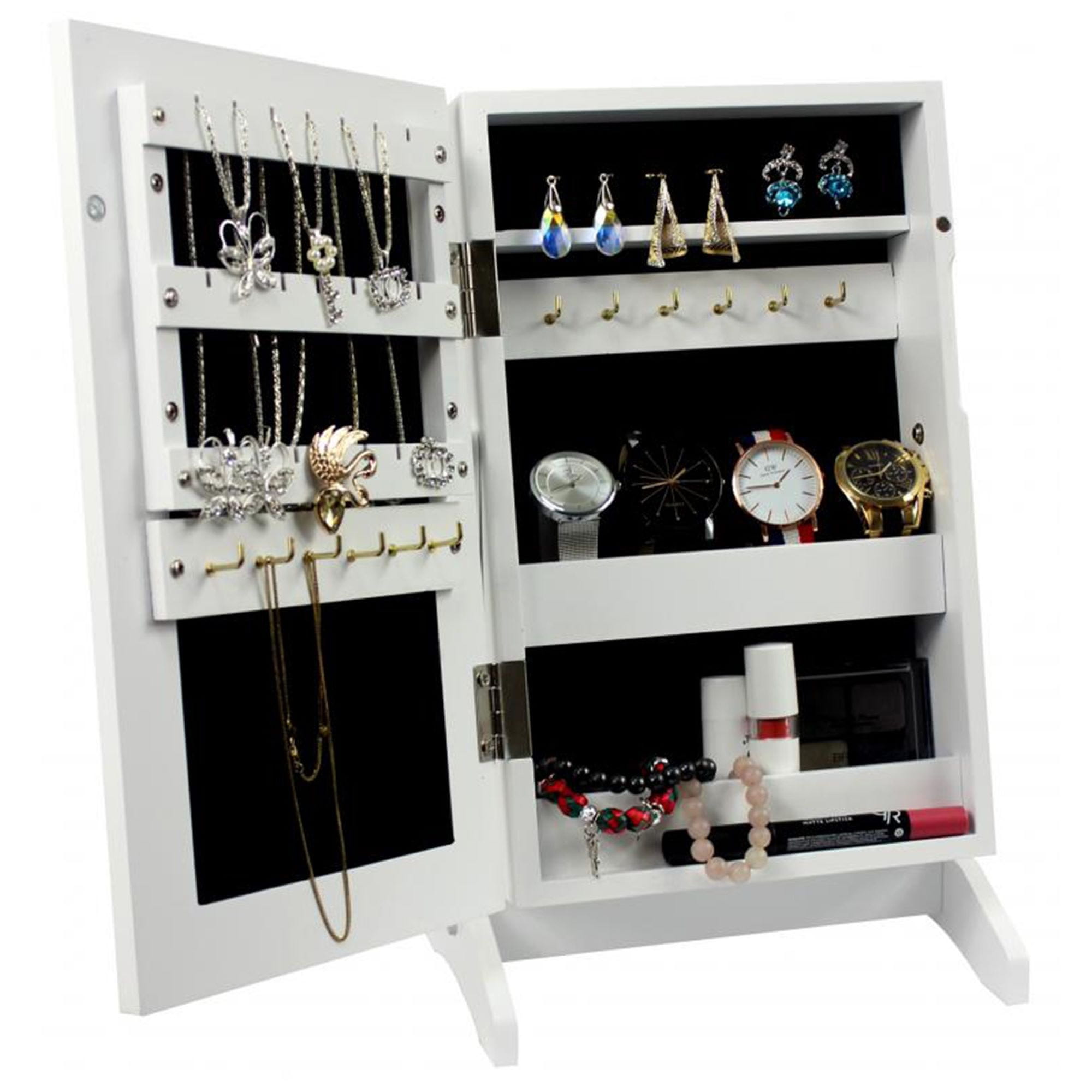 sarcia.eu 2v1 bela omarica za nakit z ogledalom – zaklenljiv organizator z oblazinjenim notranjim delom, ogledalo za toaletno mizico
