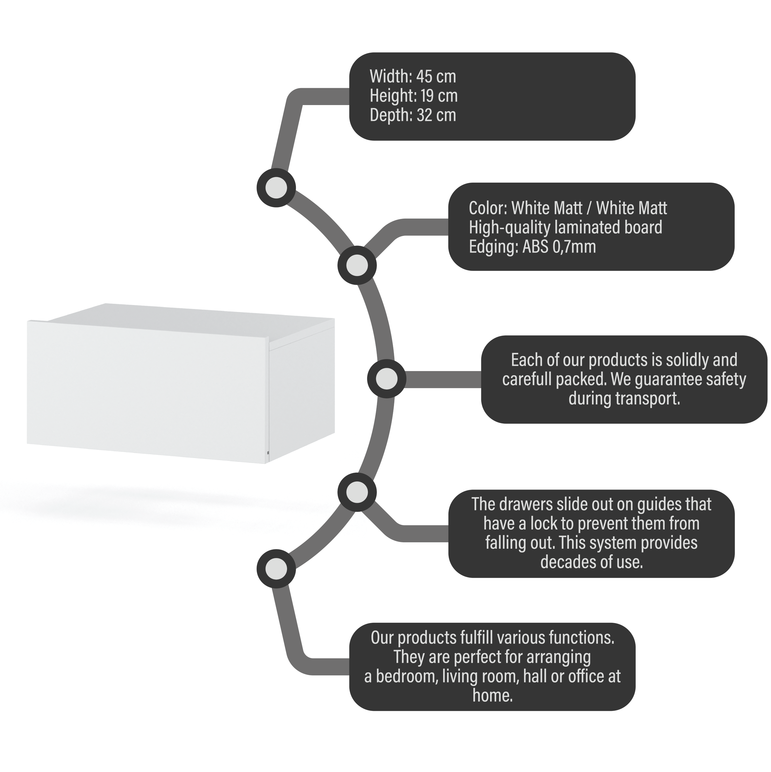 shumee Bela viseča nočna omarica 45 cm 1S Nočna omarica Pohištvo za spalnico Nakastlik