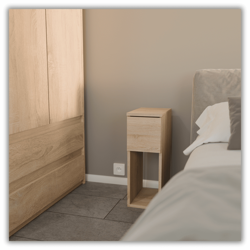 NOČNA OMARICA SONOMA HRAST OZKA NOČNA OMARICA 20 CM Z 1 PREDALOM ZA SPALNICO Nočna omarica je nenadomestljiv element vsake spalnice, ki nas podpira pri vsakodnevnih rutinskih dejavnostih. Zahvaljujoč temu bomo vedno našli prostor za telefon, svetilko ali vodo, ki jih lahko postavimo ob posteljo na dosegu roke. Iz visokokakovostnih materialov z enim predalom brez ročajev, ki se odpira z valjčnim vodilom z izvlečno zaporo, ki preprečuje padec predala na tla. Ima minimalistične noge, ki mu dajejo dodaten čar. Z nakupom tega izdelka boste zagotovo spremenili svojo spalnico v svoj najljubši in udoben kotiček v domu, ki ga imate tako radi. Informacije o izdelku: Odpiranje: brez ročajev Oblika: mat, zaradi česar se pohištvo težko umaže Laminirana plošča: visoka kakovost s povečano odpornostjo na praske Zaključek: ABS furnir (0,6 mm) ščiti pred vlago ali manjšimi razlitji Trdna konstrukcija: zagotavlja dolgoletno uporabo, hkrati pa ohranja vzdržljiv in estetski videz Valjčna vodila: gladko drsijo z izvlečno zaporo, ki preprečuje, da bi predal padel na tla Tehnične specifikacije Širina: 20 cm | Globina: 30 cm | Višina: 55 cm Država proizvodnje: Poljska Vrsta pohištva: Stoječe Material: Laminirana plošča Barva: Sonoma hrast Končna obdelava: mat Debelina plošče: 16 mm Teža izdelka: 8 kg Število predalov: 1 Rob: ABS (0,6 mm) Globina predala: 25 cm Širina predala: 15 cm Odpiranje predala: brez ročaja Dodatna funkcionalnost: zaklepanje podaljška predala Sestavljanje: izdelek je pakiran v paketu za enostavno samostojno sestavljanje z jasnimi navodili in vsemi potrebnimi dodatki. Zakaj je nočna omarica z 1 predalom dobra izbira? Konstrukcija je močna in izdelana iz kakovostne laminirane plošče, zaradi česar je vzdržljiva in stabilna dolgo časa. Trenutno so v modi skrbno oblikovane omare, ki vsaki sobi dodajo sodoben slog in videz. Valjčna vodila so pomemben del sodobnih predalnikov. Zahvaljujoč njim predali delujejo gladko in tiho ter ne padejo na tla. Zaradi tega je uporaba predalnikov bolj priročna in varnejša. Kaj boste pridobili? Čudovite nočne omarice za vašo spalnico, ki bodo poskrbele za eleganten in lep videz. Zaradi njih se boste počutili bolje in ustvarili prijetno vzdušje. Prostorna shramba bo zagotovila praktično izrabo prostora, nočna omarica pa bo shranila najnujnejše predmete, ki bodo pomagali ohranjati urejenost vaše spalnice. Več prostora in časa boste pridobili, če boste stvari shranjevali v predalih ob postelji. To vam bo pomagalo preprečiti nered in olajšalo organizacijo. Imeli boste več prostora in prihranili čas pri čiščenju. Pomembne informacije: Navodila po korakih vam pomagajo hitro in enostavno sestaviti pohištvo, tudi če nimate izkušenj. Dodatki: Komplet vsebuje vse dele, potrebne za sestavljanje izdelka, kot so vijaki in sorniki. Skrbno so bili izbrani, da bi bila samostojna montaža lažja in hitrejša. Sestavljanje: Postopek sestavljanja izdelka je bil čim bolj poenostavljen, da se zagotovi udobje uporabnika. Vsi elementi so natančno usklajeni, kar omogoča hitro in nemoteno montažo. Namestitev ne zahteva specializiranih znanj ali naprednih orodij. ️ Kakovost in vzdržljivost skozi leta: Značilnosti pohištvene plošče: ABS furnir: 0,6 mm Debelina plošče: 16 mm Laminirana površina: Sonoma hrast Laminirana površina pulta: Sonoma hrast Certifikati in odobritve: Certifikat FSC: Izdelek je izdelan iz materialov iz odgovorno upravljanih gozdov. Potrdila o kakovosti: Plošča izpolnjuje najvišje standarde kakovosti, kar zagotavlja popolno varnost uporabe. Vabimo vas tudi na našo dražbo št. 11767080929, 13917415836, kjer lahko kupite omaro in komodo s 3 predali, ki se popolnoma ujemajo z nočnimi omaricami. ➡️ Pogosto zastavljena vprašanja o naši nočni omarici z dvema predaloma: Iz katerega materiala je izdelana nočna omarica? Omarica je izdelana iz visokokakovostne laminirane plošče in drugih materialov, ki zagotavljajo dolgoletno vzdržljivost. Je nočna omarica poljski izdelek? Da, nočna omarica je bila izdelana na Poljskem, kar zagotavlja visoko kakovost izdelave in podporo lokalnemu gospodarstvu. Je nočna omarica stabilna? Nočna omarica je trpežna in stabilna ter zasnovana za maksimalno uporabnost, tudi ko so predali popolnoma naloženi. Je nočna omarica na voljo tudi v drugih barvah? Imamo široko paleto barv, tako da bo vsakdo našel pravo barvo za svojo notranjost. Druge različice so na voljo na naših drugih dražbah. Proizvajalec modernega, samomontažnega pohištva, ki se prilagaja trenutnim trendom in standardom, idealnim za naše domove in stanovanja, ne glede na njihovo velikost. Optimalna velikost izdelkov ne zavzame veliko prostora, ampak omogoča shranjevanje najnujnejših vsakdanjih predmetov. Poskrbimo, da bo vaša notranjost osvežena, ne da bi pri tem obremenili vaš proračun!