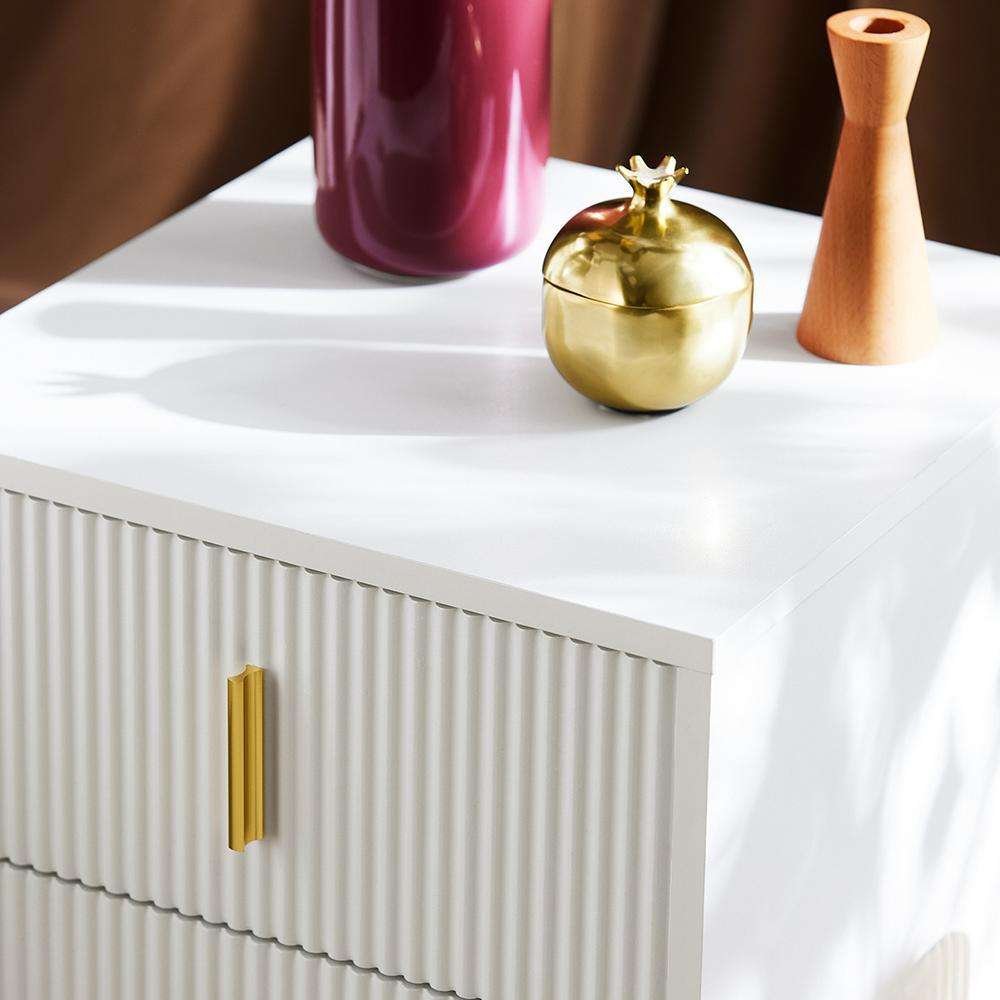 Ta vsestranska stranska mizica ponuja priročno shranjevanje z dvema predaloma, zaradi česar je idealna kot nočna omarica ali mizica ob kavču. Zaradi kompaktne zasnove se enostavno prilega spalnicam ali dnevnim sobam ter pomaga ohranjati nujne stvari urejene in na dosegu roke. Celoten opis