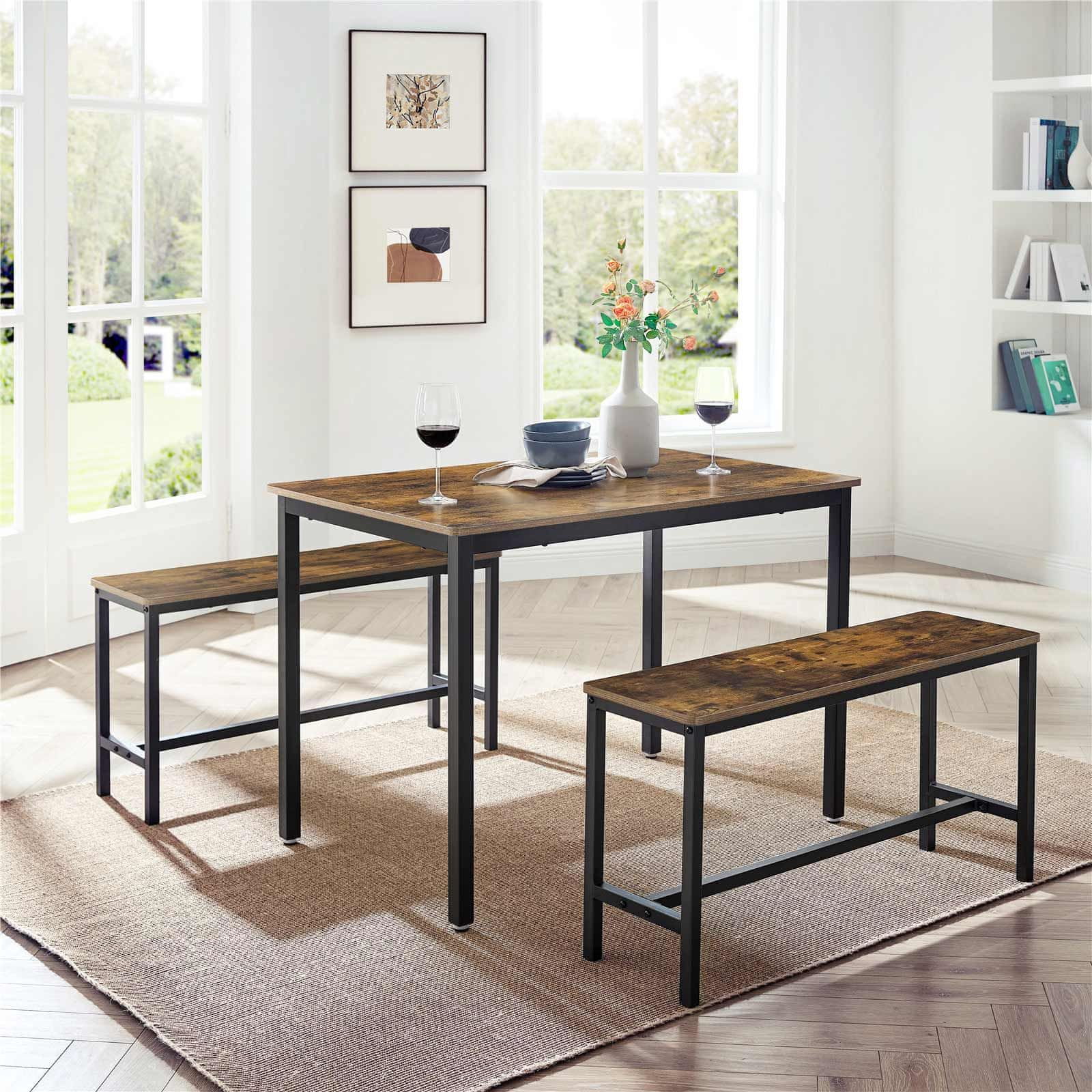 Taoline söögilauakomplekt kahe pingiga pakub stiilset tööstusdisaini, mis sobib ideaalselt köökidesse, elutubadesse või sööginurkadesse. Selle tugev konstruktsioon tagab vastupidavuse ja pakub mugavat ruumi söögiks ja kogunemisteks. Celoten opis