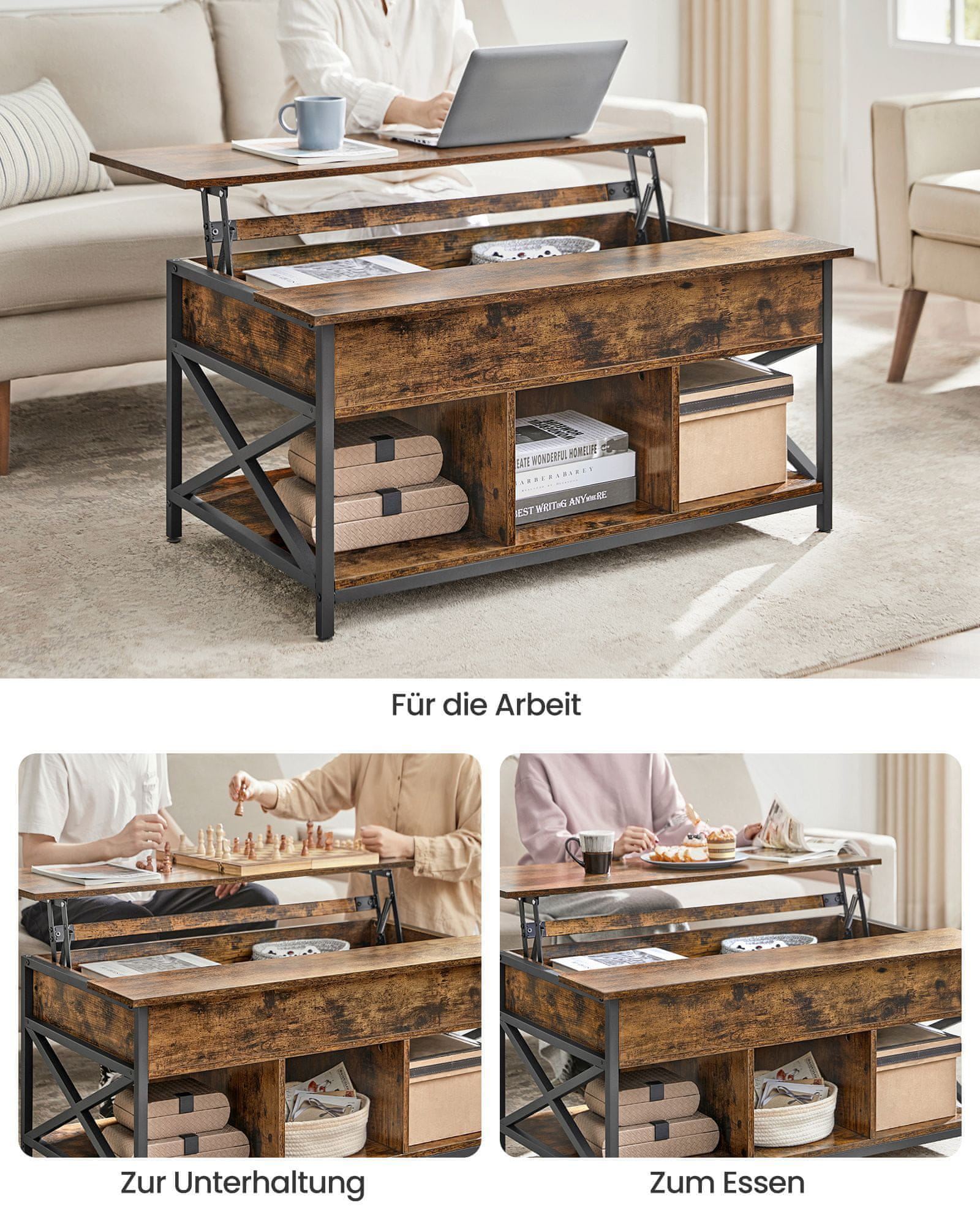 Ta reguleeritav kohvilaud pakub nii avatud kui ka peidetud hoiuruumi, muutes selle ideaalseks elutoa tarvikute organiseerimiseks. Selle tugev konstruktsioon ja kaasaegne disain lisavad stiili ja funktsionaalsust igasse ruumi. Sobib ideaalselt igapäevaseks kasutamiseks ja külaliste vastuvõtmiseks. Celoten opis