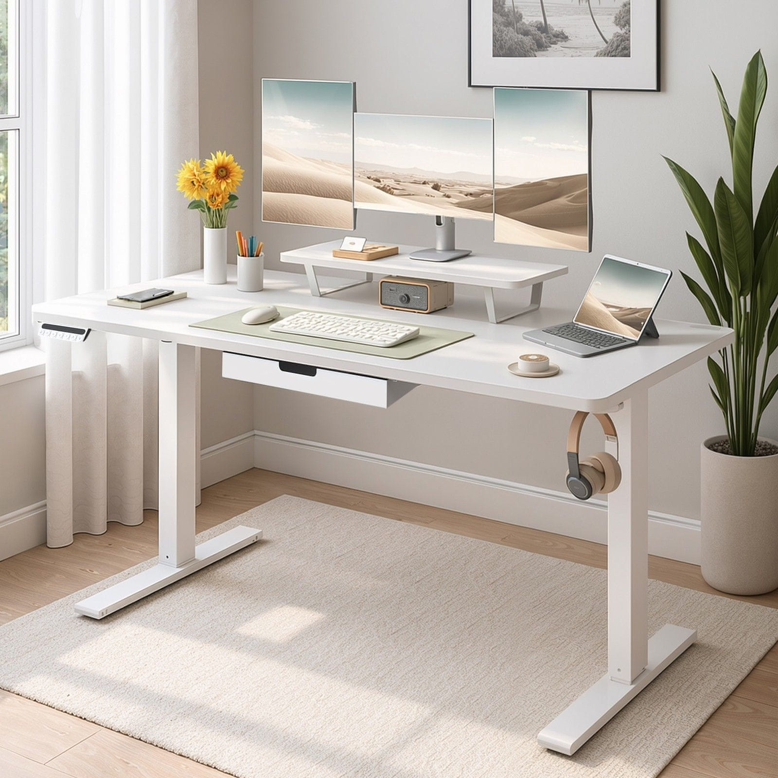 To mizo z nastavljivo višino je zasnovana za zagotavljanje prilagodljivega in ergonomsko prijaznega delovnega prostora zaradi česar je idealna za pisarniška okolja. Vključuje vsestranski stojalo za monitor priročno predal in sodobne možnosti povezljivosti za izboljšanje produktivnosti in udobja med dolgimi delovnimi urami. Čista bela obdelava mize in robustna konstrukcija zagotavljata tako slog kot vzdržljivost.