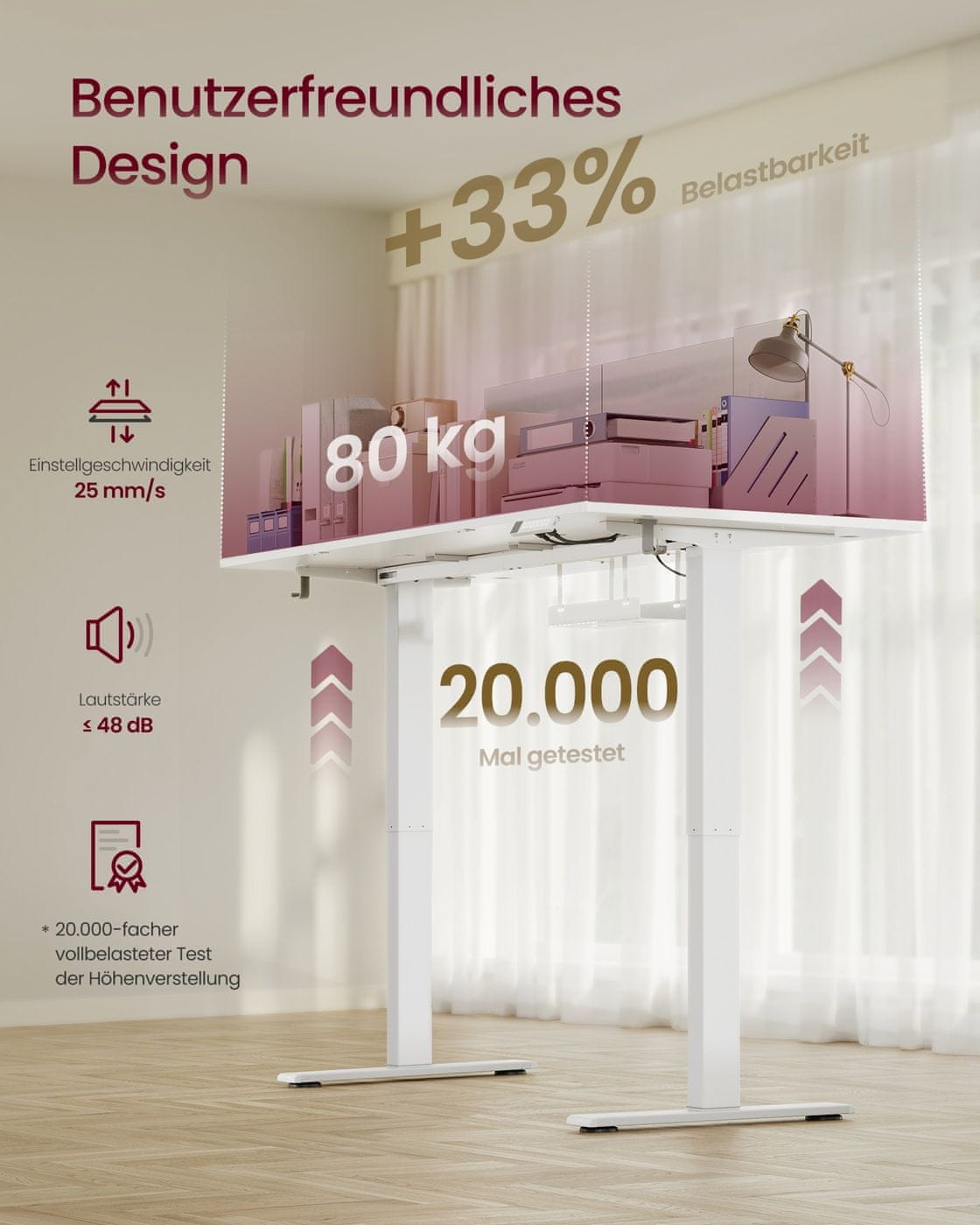 Songmics Višinasto nastavljiva pisalna miza 140x80x72-120 cm bela