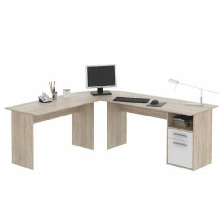 KONDELA Kotna PC miza Maurus MA11 New - sonoma hrast / bela