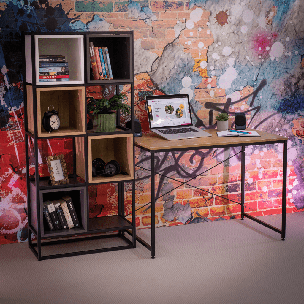 Material: kovina / DTD laminat Barva: črna / hrast Dimenzije (ŠxVxV): 100×60×72 cm Debelina materiala: 16 mm Nosilnost: 80 kg Popravljalni vijaki na nogah sodobno oblikovanje vsestranska uporaba Dobavljeno razstavljeno Celoten opis