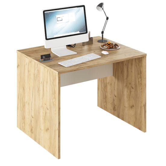 Izdelana iz visokokakovostnega aglomeriranega materiala z laminirano površinsko obdelavo DTD, miza zagotavlja dolgo življenjsko dobo in odpornost na običajno obrabo. Njegova svetla barvna kombinacija daje prostoru svežino in moderen videz. Z merami 100 cm širine, 80 cm globine in 76 cm višine zagotavlja dovolj delovnega prostora za vsakodnevna opravila.