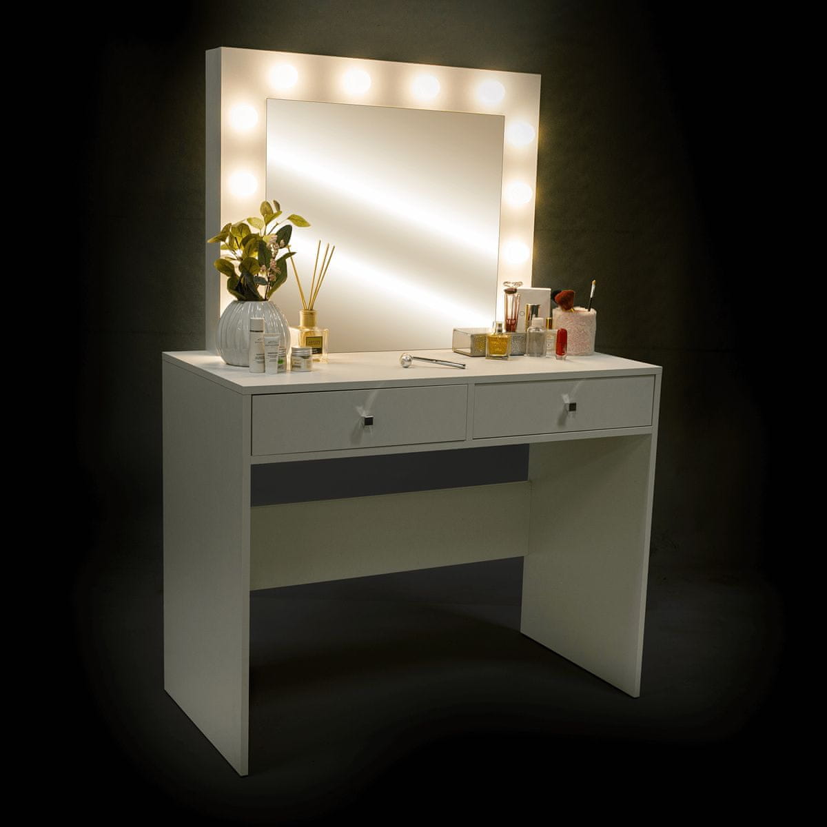 Če iščete praktičen in hkrati eleganten dodatek za svojo spalnico, je toaletna mizica Ledio prava izbira. Visokokakovostna izdelava in brezčasen dizajn vam bosta zagotavljala udobje pri vsakodnevni negi sebe.
