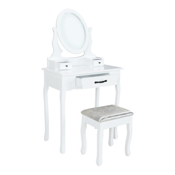 KONDELA Toaletna mizica s stolčkom Linet New - bela/srebrna/zlata