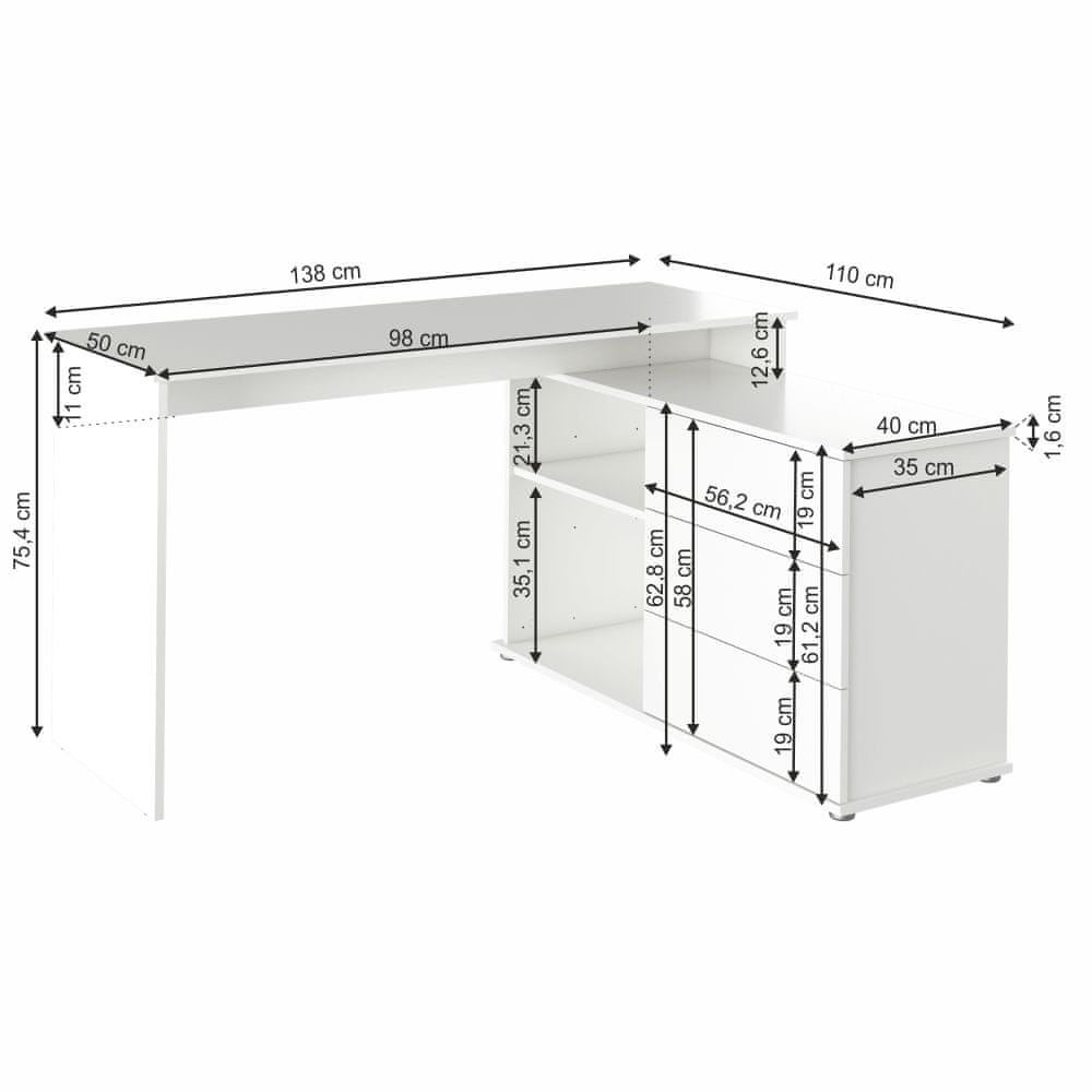 KONDELA Univerzalna kotna PC miza Terino L/P - bela