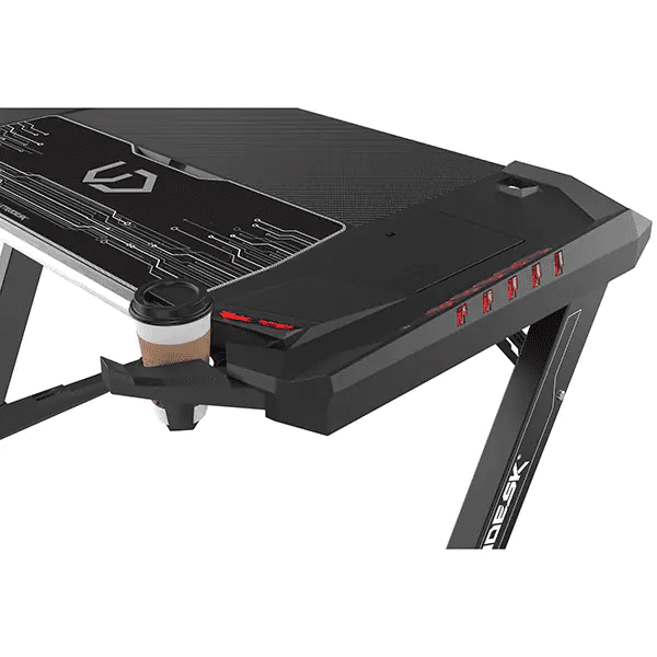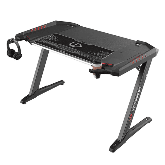Ultradesk Gaming miza ROCKET BLACK, 128x68 cm, 78 cm, z XL podlogo za miško, držalom za pijačo in slušalke