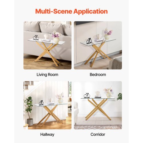 Ta moderna steklena klubska mizica ima robusten železni okvir in kaljeno stekleno ploščo, ki nudi eleganten in praktičen površinski prostor za vaš dnevni prostor ali predsobo. Njena geometrijska zasnova in nastavljive nogice zagotavljajo stabilnost. Dimenzije: 114,3×45,7×76,2 cm. Celoten opis