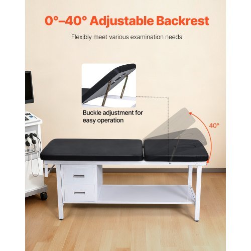 VEVOR Medicinska pregledna miza 1855x705x815 cm nastavljiv naslon za hrbet polica za shranjevanje