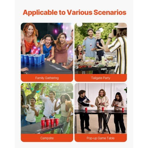 Ta prenosna miza za beer pong je zasnovana za enostaven transport in hitro postavitev zaradi česar je idealna za zabave druženja in dogodke na prostem. Njena zložljiva konstrukcija in ročaj za prenašanje zagotavljata priročno mobilnost medtem ko robustna izdelava nudi zanesljivo igralno površino. Povišana zasnova omogoča udobno igranje zaradi česar je primerna za različne priložnosti kot so tailgate zabave kampiranje in pisarniški dogodki.