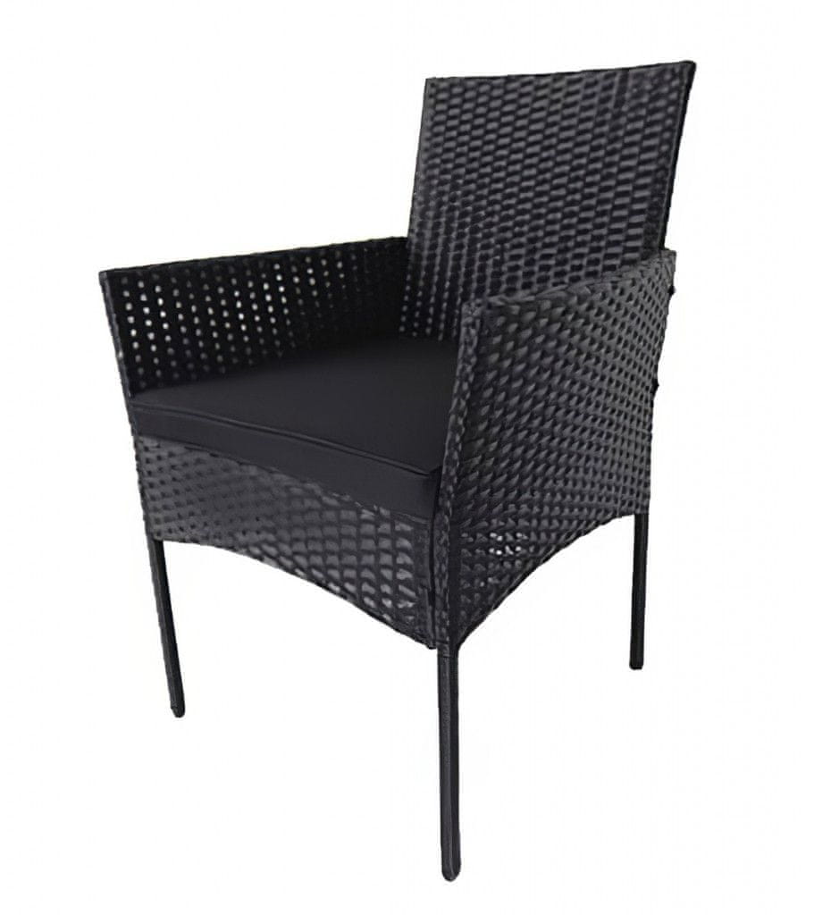 Vrtni komplet 1 dvoseda, 2 fotelja in 1 mize iz umetnega ratana. Zahvaljujoč izbiri materiala so fotelji enostavni za pranje in vzdrževanje sploh ni zahtevno. Dobavljamo črne sedeže, višine 5 cm. Konstrukcija je kovinska, prevlečena z visokokakovostno plastiko, ki spominja na ratan. Dimenzije dvoseda so (Š x V x G cm) – 100 × 84 × 57 cm, dimenzije fotelja pa so (Š x V x G cm) – 57 × 84 × 57 cm. Višina sedeža s sedalom je približno 46 cm. Klubska mizica s črnim kaljenim steklom z dimenzijami (Š x V x G cm) 60 × 35 × 40 cm je del kompleta. Barva – črna. Dobavljamo razstavljeno.