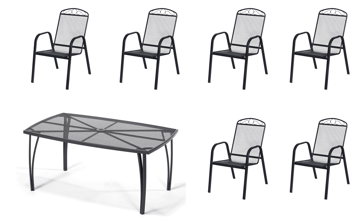 Kovinski vrtni set Eoshop 62: miza + 6 stolov za zlaganje Celoten opis
