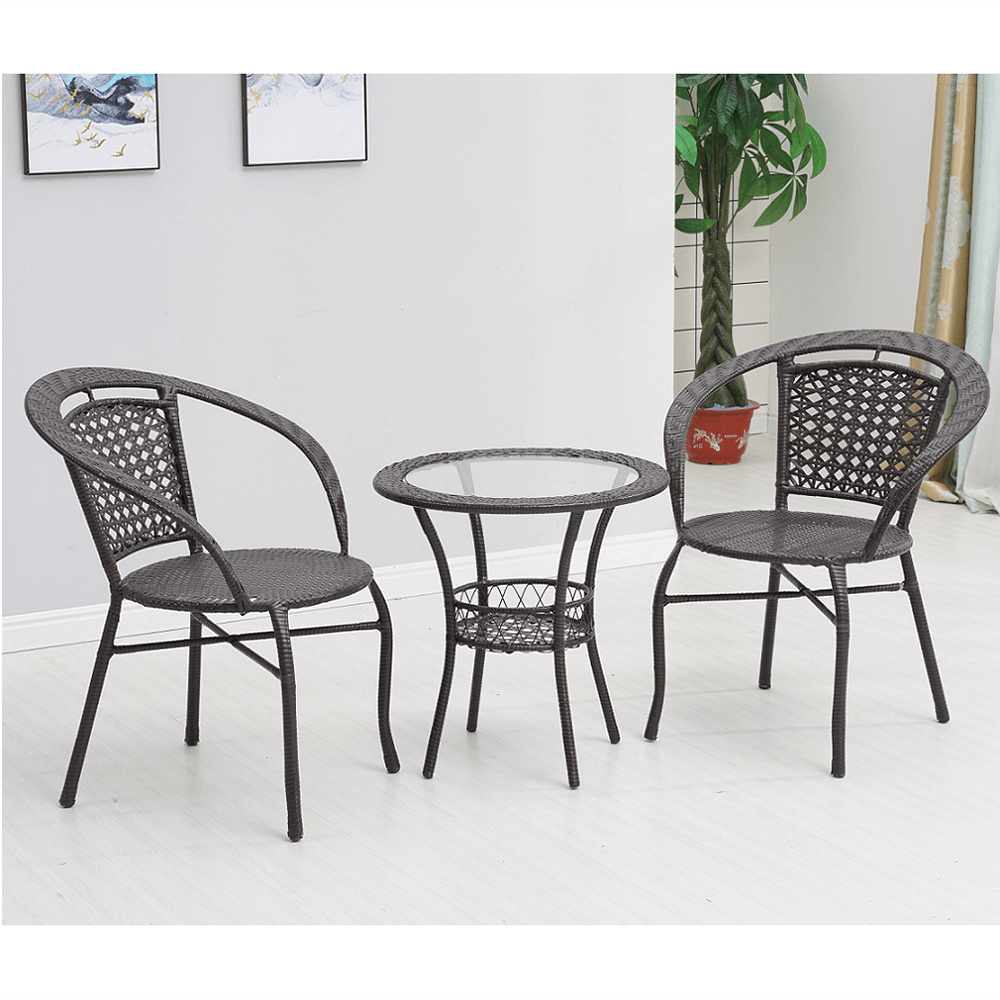 eoshop Vrtni set iz umetnega ratana LASAN 1+2, rjav, miza 60 cm, 2 stola