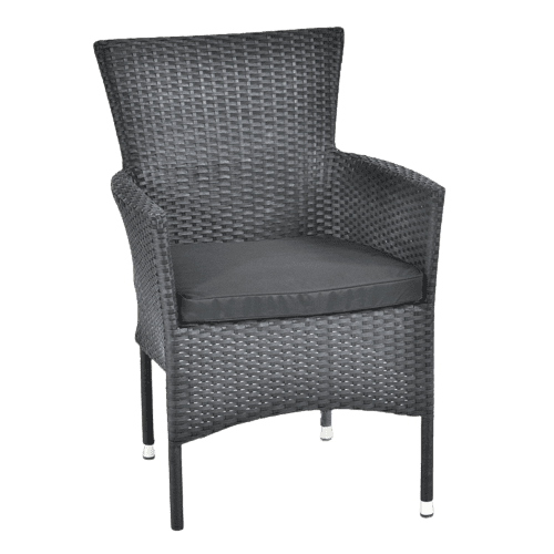 Trden, vzdržljiv in udoben stol je dobavljen vključno s sedežnimi blazinami in ga je mogoče zlagati. Zaradi svoje kakovostne konstrukcije in odpornosti proti rji lahko prenese največjo obremenitev več let. Ročno tkan ratan ne zbledi na soncu. Velikodušna in inteligentna oblika vam bo zagotovila prijetno udobje. Na splošno je konstrukcija odporna na vremenske vplive in lahko prenese temperature od –10 °C do +40 °C. Zaradi svoje preprostosti je primerna za vsako okolje.