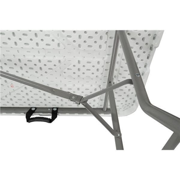 • Enostavnost uporabe: Zložljiva konstrukcija omogoča hitro razstavljanje in zlaganje mize, poseben ročaj pa olajša prenašanje.