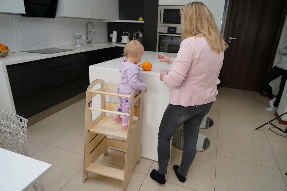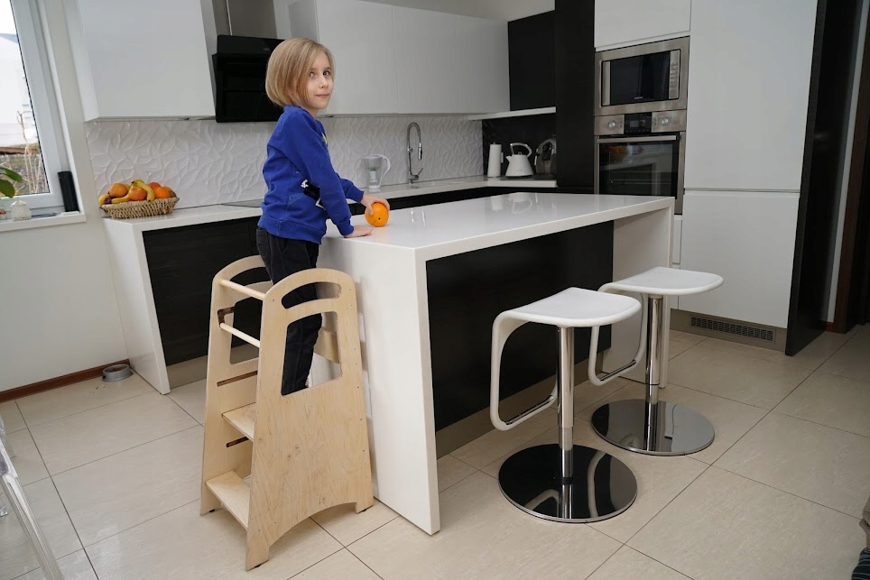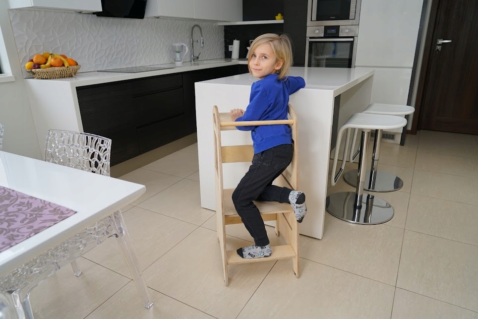 Montessori kuhinjski pomočnik za otroke, lesen, masivni Celoten opis