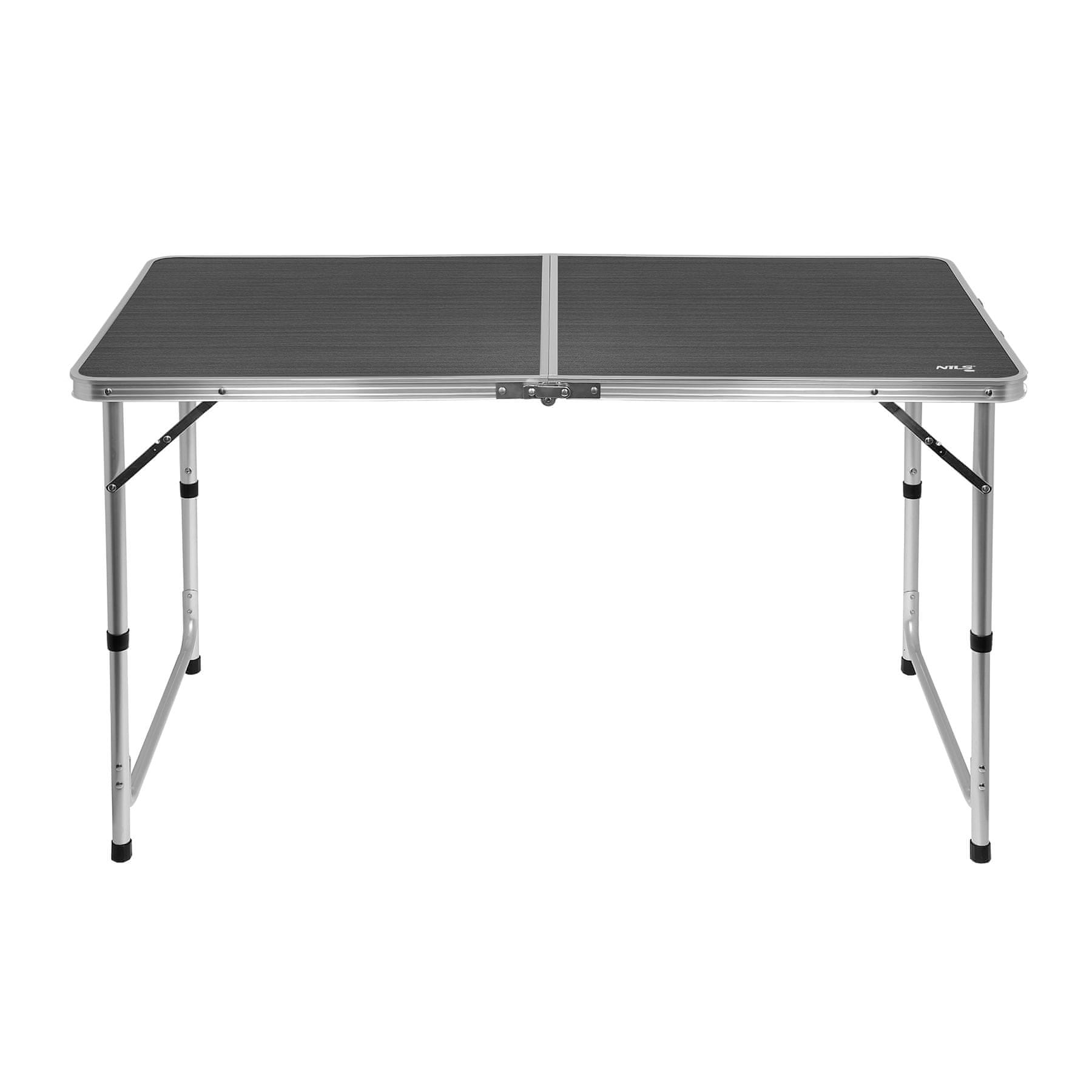 Miza NC1605 znamke NILS CAMP je odlična rešitev za vse, ki cenite praktične rešitve za poletne piknike ali družinska kampiranja. NC1605 je raztegljiva miza s tristopenjsko nastavitvijo višine, kar omogoča prilagajanje individualnim potrebam uporabnikov. Popoln je tako za otroke kot za odrasle! Ta edinstvena miza je izdelana iz visokokakovostnih materialov – trdna aluminijasta konstrukcija in plošča iz MDF zagotavljata stabilnost in majhno težo. Poleg tega je mizo zelo enostavno razstaviti. NC1605 se zloži kot kovček, stranski ročaj pa omogoča udobno prenašanje. Specifikacija: material: MDF, aluminij Barva mizne plošče: antracitna Teža: 4,3 kg Največja obremenitev mizne plošče: 25 kg Mere mize: Širina: 60 cm Višina: 55 ‚ÄÏ 61,5 – 70 cm Dolžina: 120 cm Razmik nog: 110 × 55 cm Zložene mere: 60 × 60 × 6,5 cm
