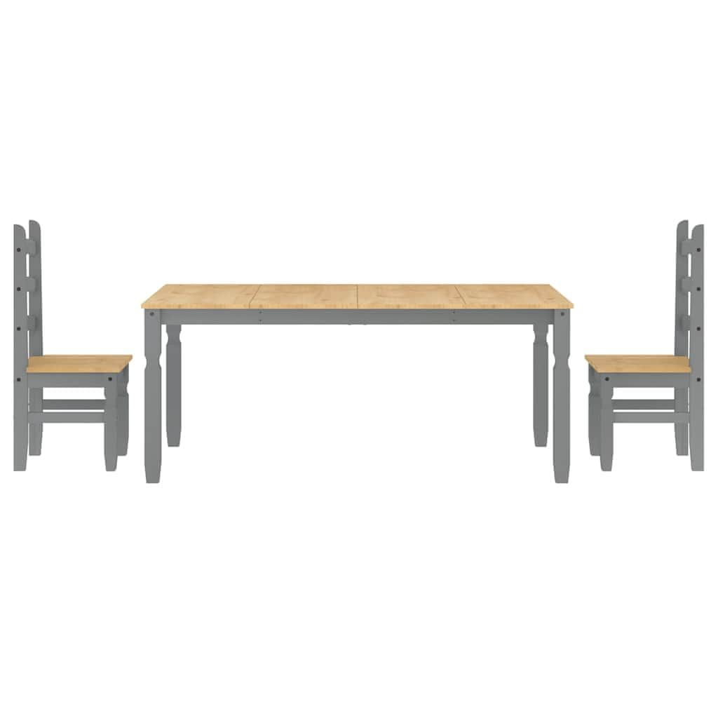 Vidaxl 3 kosi jedilnega kompleta Panama Siva Masivni les borovega lesa