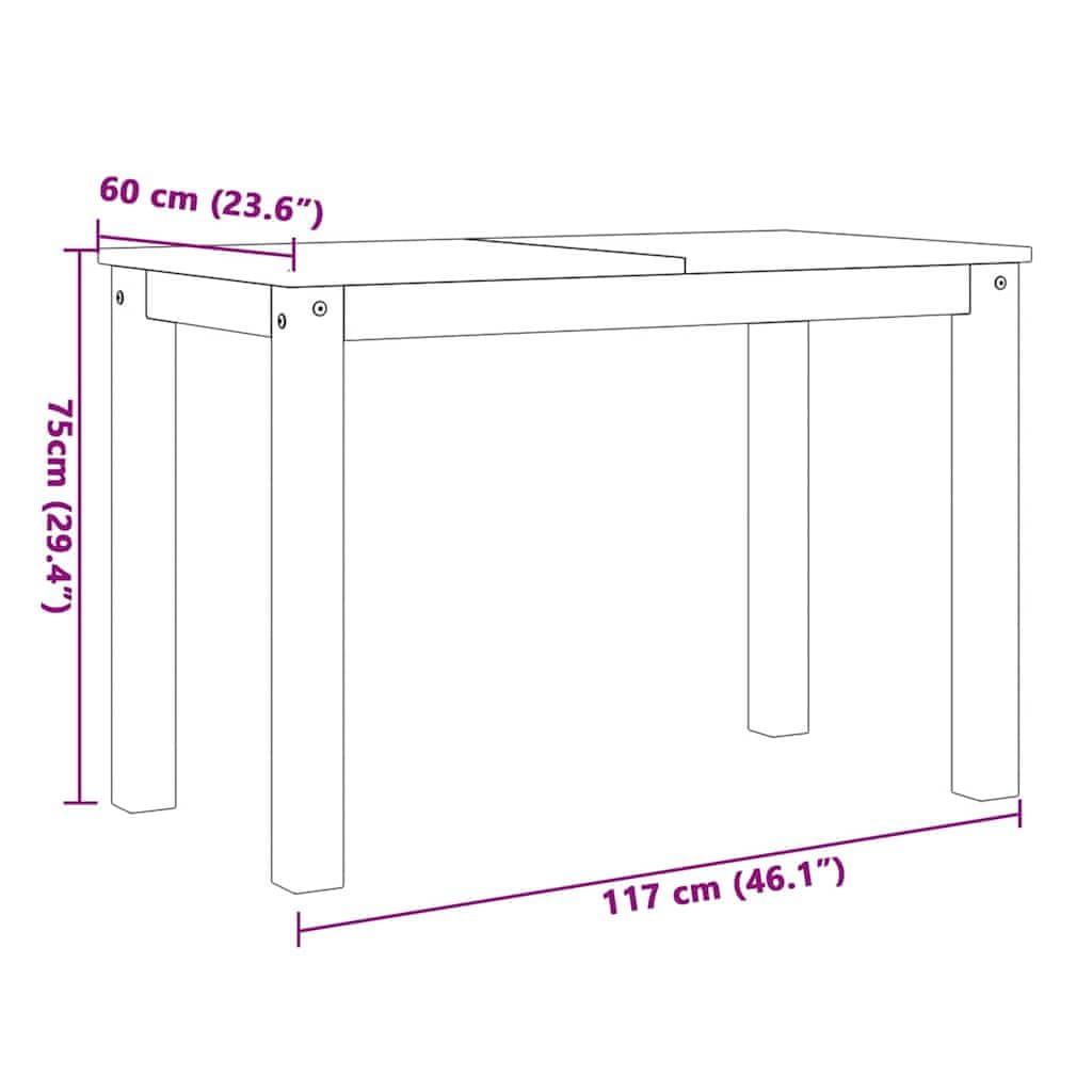 • Dimenzije mize: 117 × 60 × 75 cm (d x š x v)