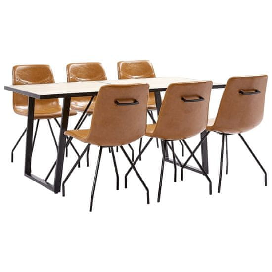 Vidaxl Jedilna garnitura 7-delna v barvi konjaka umetno usnje