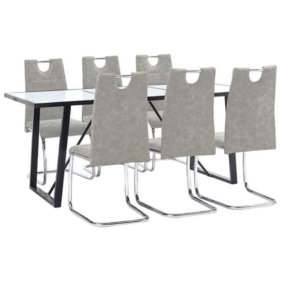 Vidaxl Jedilna garnitura 7-delna svetlo sivo umetno usnje