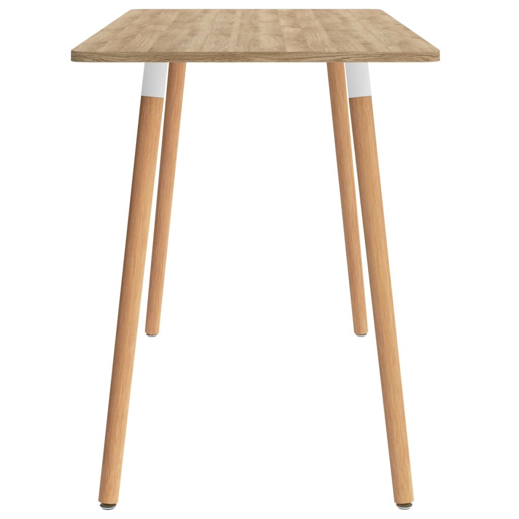 Površina mize je izdelana iz vrhunskega mediapana s PVC-jem, stol pa je izdelan iz PP materiala, zato so kosi pohištva preprosti za čiščenje in vzdržljivi. Gladke linije bodo vašim obrokom dodale čudovito eleganco. Noge iz trdne bukovine jedilni mizi in stolom zagotavljajo stabilnost in trdnost. Stoli imajo tudi visoko naslonjalo za hrbet z ukrivljenim videzom, zato zagotavljajo izjemno udobno sedenje.