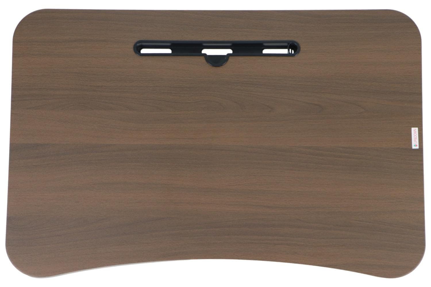 Višinsko nastavljiva miza SH-A10. Ima nastavljive noge. Mizna plošča iz laminata dimenzij 72×48 cm. Nastavitev višine v območju 73,5–104 cm. Namizna plošča v barvi oreha, okvir črn. Celoten opis