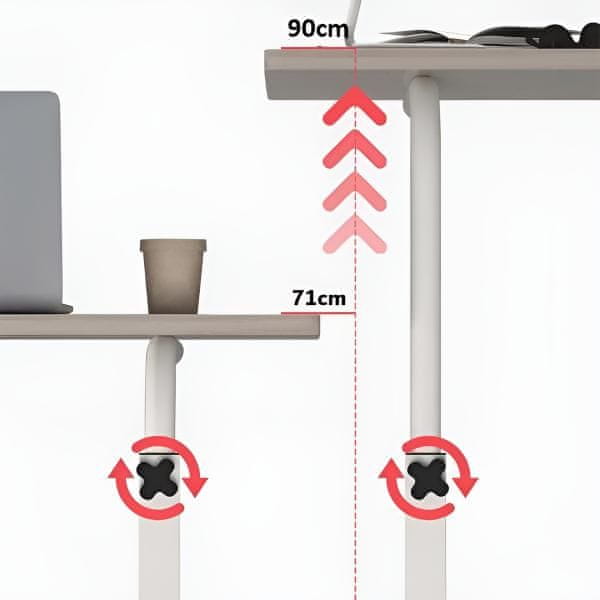 Višino mize lahko prilagodite svojim potrebam. Najmanjša višina: 71 cm, največja višina: 90 cm. Odlična je za sedeča ali stoječa opravila, zato je vsestransko uporabna za vse dejavnosti.