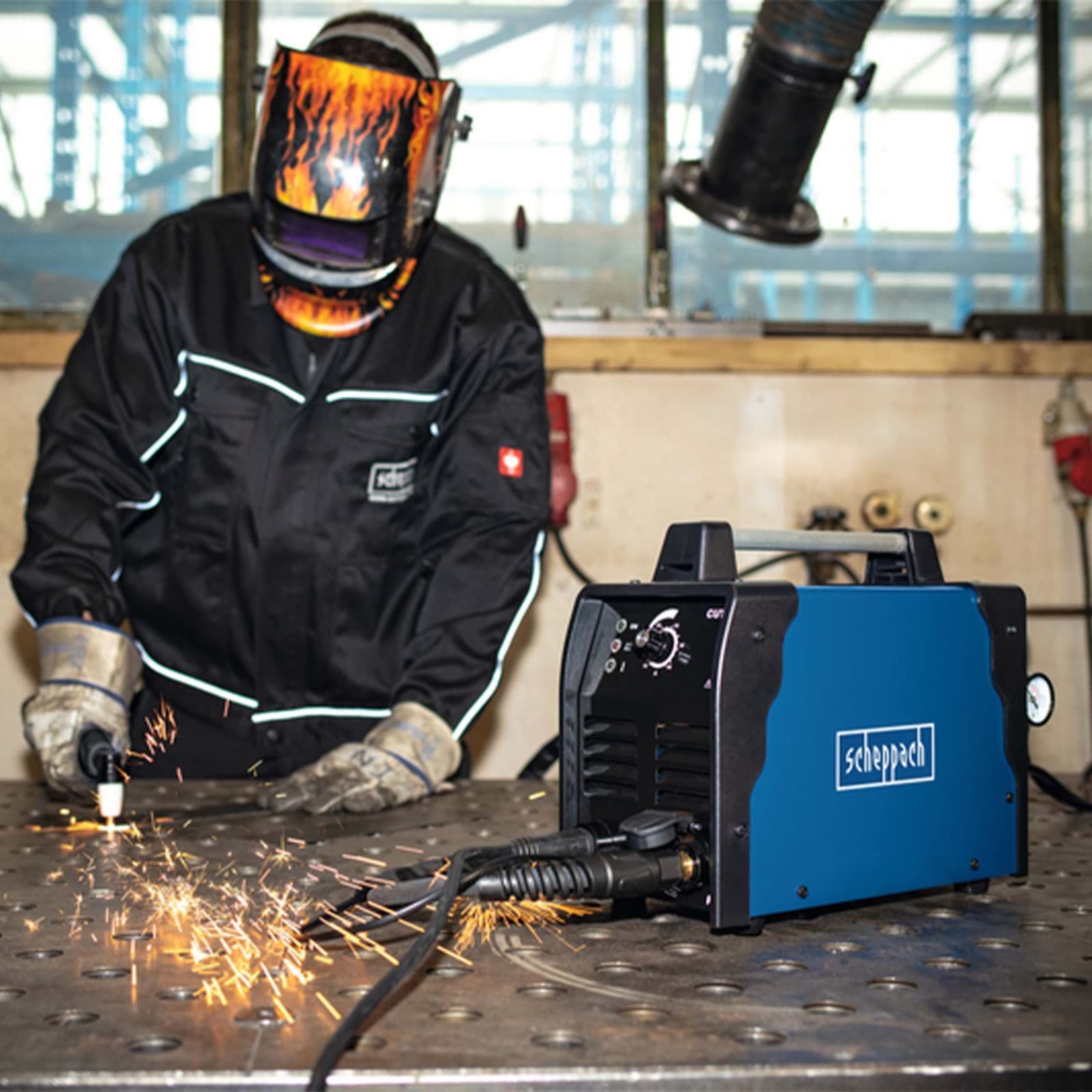 Scheppach PLC 40 plasmaskärare är en kraftfull men kompakt maskin avsedd för skärning av järn, rostfritt stål, stålplåt, aluminium eller koppar, upp till 12 mm tjocklek.