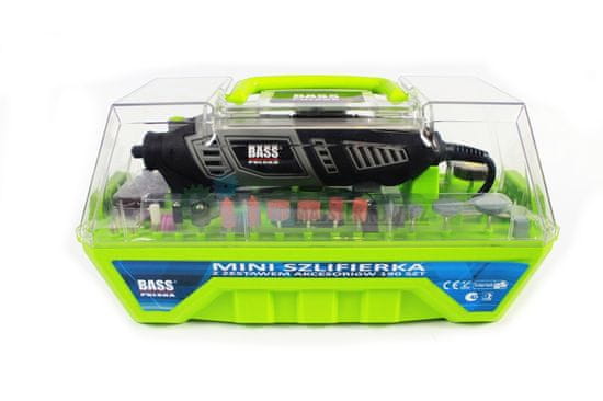 • Majhen brusilnik Bass Polska s širokim naborom dodatkov in fleksibilnim kablom za natančno delo na težko dostopnih mestih.