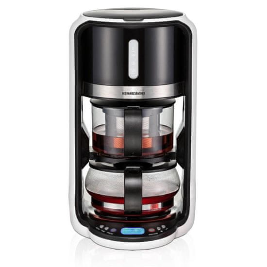 Eleganten aparat, ki prepriča z vrhunsko izdelavo in dovršeno tehnologijo. Zahvaljujoč elektronskemu nadzoru menija je mogoče nastaviti 4 različne temperature kuhanja in čas namakanja individualno prilagoditi vrsti uporabljenega čaja. Ne glede na to, ali gre za črni čaj, zeleni ali beli čaj, ali čaje iz sadja ali zelišč – ta popolnoma avtomatski aparat za pripravo čaja zagotavlja aromatične rezultate za vsak okus. Priprava popolnega čaja je enostavna: nalijte vodo, dajte čaj v cedilo za čaj, izberite program glede na vašo vrsto čaja in po potrebi prilagodite čas namakanja; avtomatski aparat za čaj bo naredil ostalo. Voda se segreje in usmeri v filtrirni vrč, da se čaj nalije. Po preteku nastavljenega časa namakanja skuhani čaj steče v estetski stekleni čajnik, kjer ostane topel. Priročna prednastavitev časa zagona, samodejni izklop in enostavno čiščenje zaradi vrhunskih materialov naredijo rokovanje zelo udobno. Ta vrhunski aparat znamke Rommelsbacher bo všeč tudi zahtevnemu pivcu čaja!