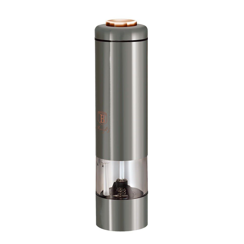 Električni brusilnik za poper in sol iz visokokakovostnega nerjavečega jekla v titanovi barvi iz linije Moonlight Metallic. Brusilnik napajajo 4 baterije AA (niso priložene) z LED osvetlitvijo. El