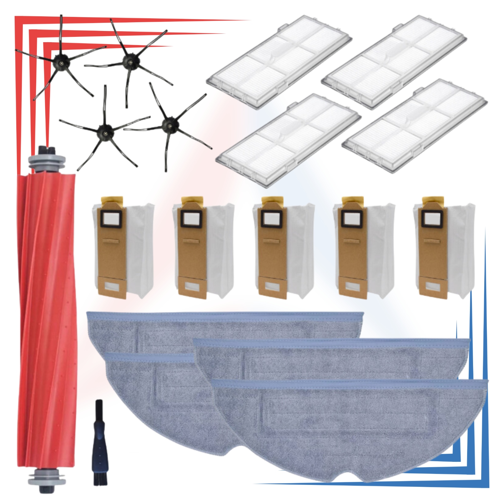 Komplet krtač, filtrov, mopov in vrečk je odlična rešitev za lastnike čistilnih robotov, ki želijo ohraniti maksimalno učinkovitost naprave.