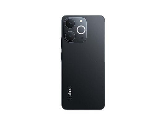 Na zadnji strani se nahaja 50 MP glavna kamera, sprednja kamera ima 5 MP za selfije in videoklice. Telefon deluje na Android 15 z realme UI, ima stranski senzor prstnega odtisa, IP54 zaščito proti prahu in vodnim kapljicam ter povečano odpornost po vojaškem standardu, kar zagotavlja dolgotrajno vzdržljivost pri vsakodnevni uporabi.