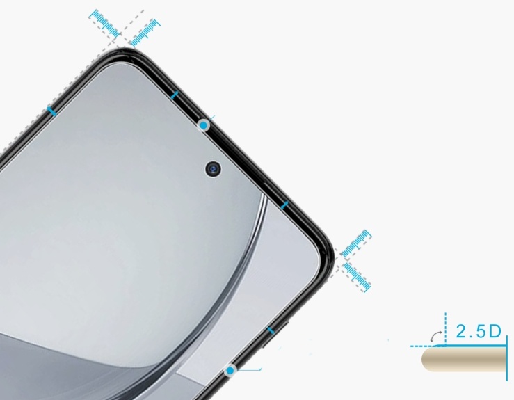 Ponujeno zaščitno steklo prekriva samo ravni del zaslona, kar pomeni, da zaslon pametnega telefona na krivinah ni prekrit s steklom. Zahvaljujoč temu zaščitno steklo ne moti večjih ohišij pametnih telefonov.