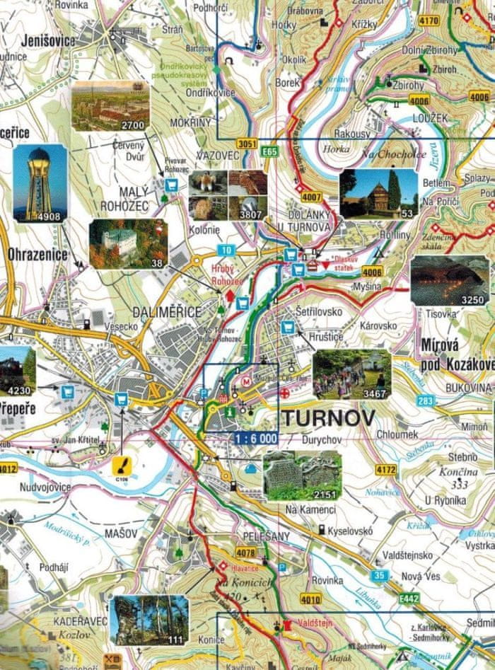 Zemljevid vključuje tudi načrte: Jičín, Turnov, Železný Brod, Nová Paka, Maloskalsko, Hruboskalsko, Prachovské skale.