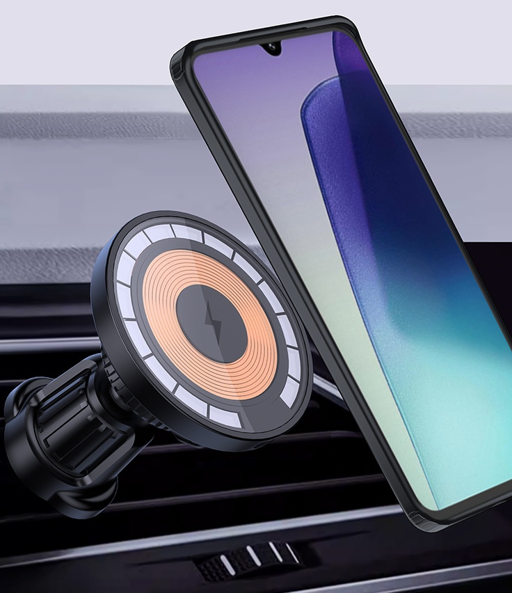 Ko nadenete ovitek, ga preprosto položite na induktivni polnilnik in vgrajeni magneti bodo vaš pametni telefon varno pritrdili na polnilno polje in vam omogočili ponovno polnjenje baterije. Ta vrsta udobja vam daje veliko svobode pri uporabi naprave tako med polnjenjem kot pri uporabi z magnetnimi avtomobilskimi držali.