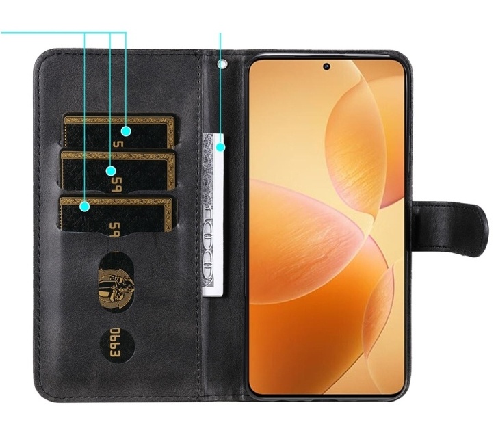 Denarnica z zadrgo za Xiaomi 14T Pro črna Celoten opis