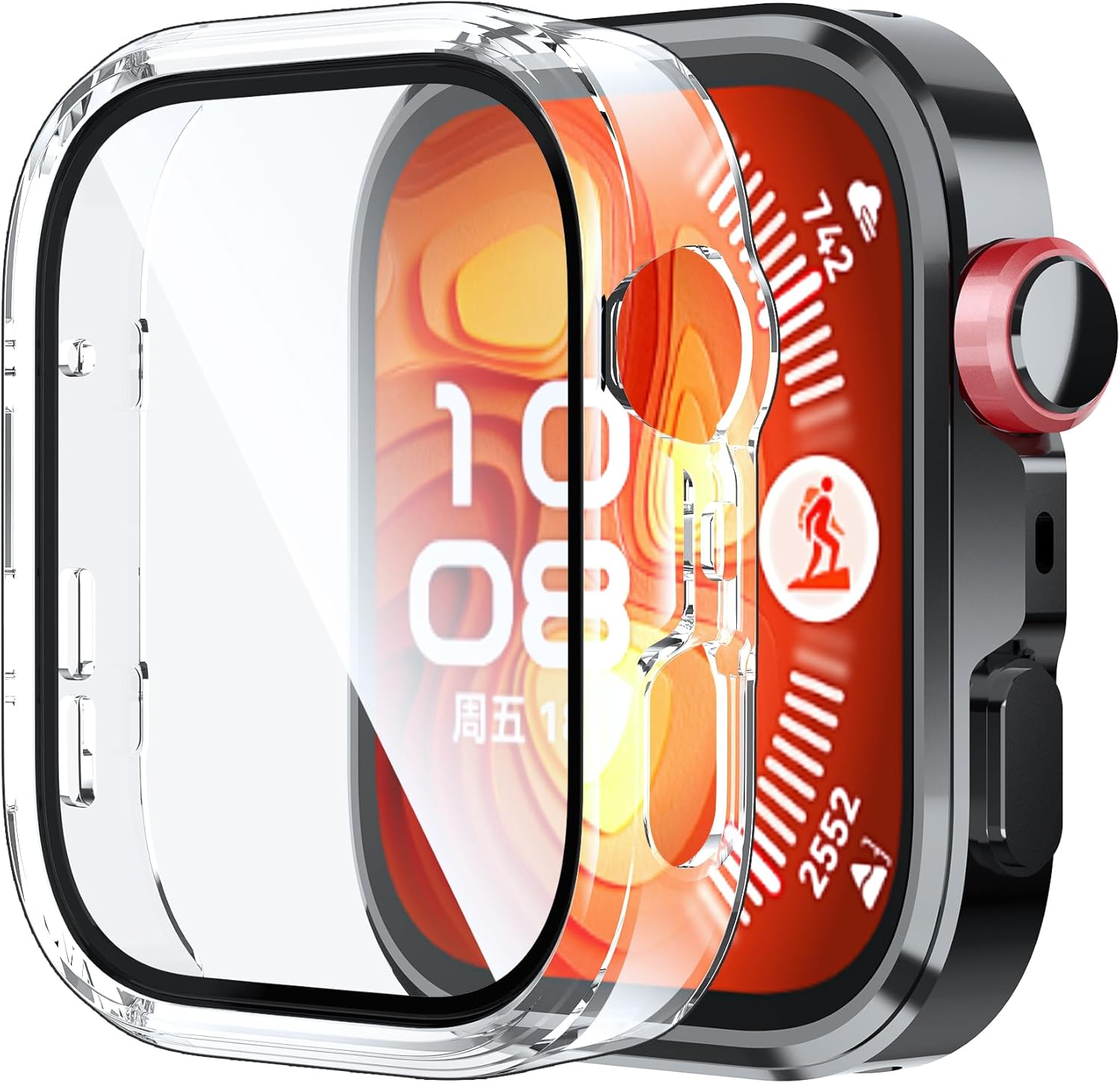 shumee Etui 2v1 s kaljenim steklom za Huawei Watch Fit 4 Pro, prozoren