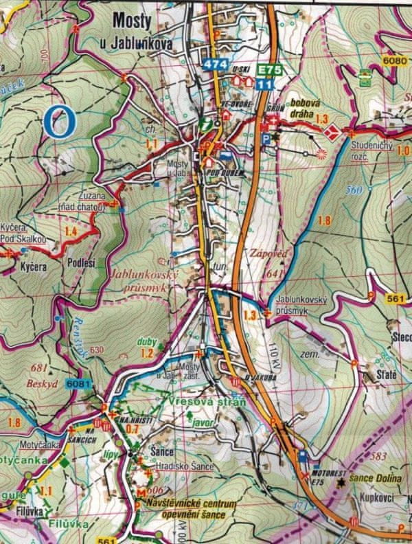 Zložljiva, dvostranska turistična karta Kysuških Beskydov v merilu 1 : 40.000, ki jo je izdala češka založba Shocart.