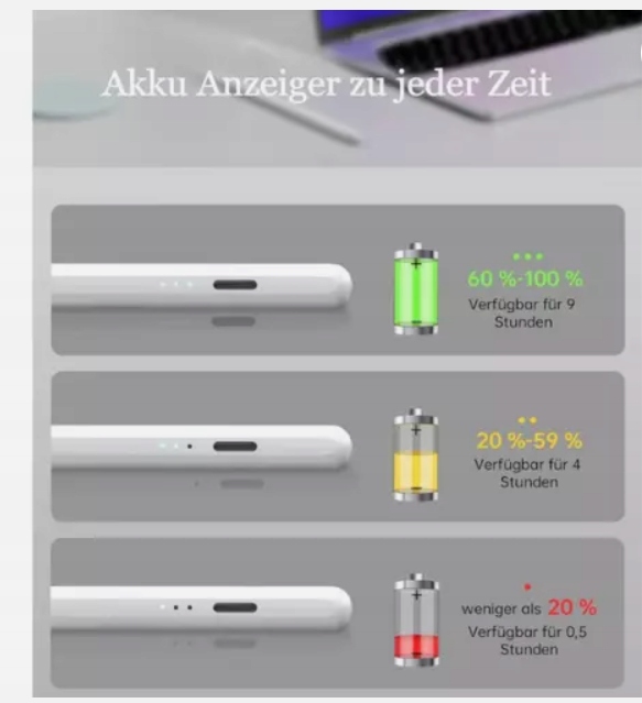Visoka natančnost in gladkost; 2-milimetrska zasnova konice pisala zagotavlja natančnost slikovnih pik in odlično odzivnost na vašem iPadu. Rišite gladko in odzivno brez zamika. Dolga življenjska doba baterije: Uživajte v vodilnem hitrem polnjenju tipa C in podaljšani življenjski dobi baterije. Popolnoma napolnite v samo 15 minutah, 8 ur delovanja baterije.