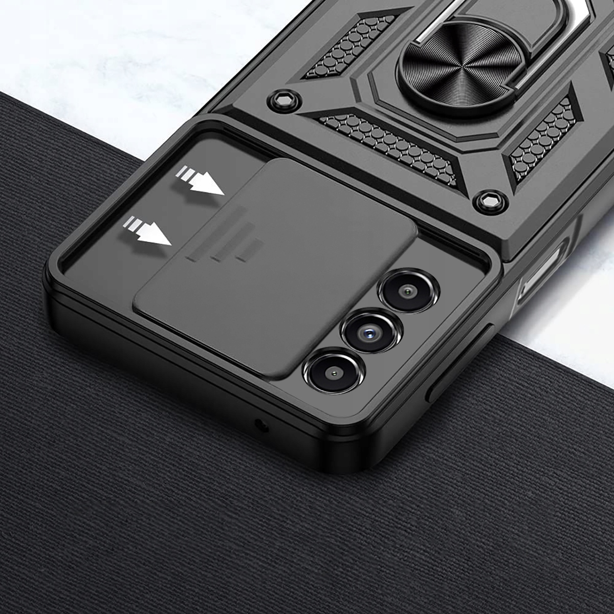 Ovitek Camshield Pro za Samsung Galaxy M14 5G črn Celoten opis