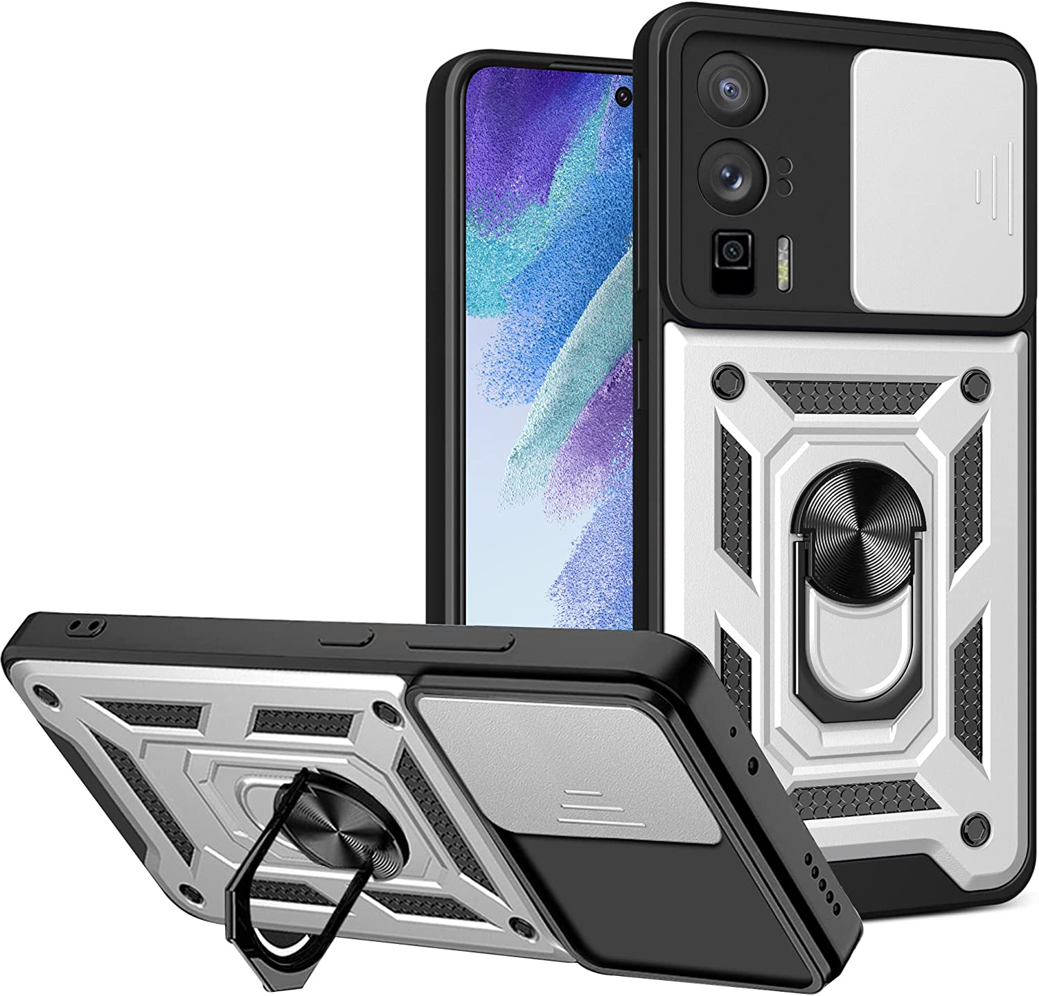 Ovitek Camshield Pro za POCO F5 Pro / Redmi K60 srebrn Celoten opis